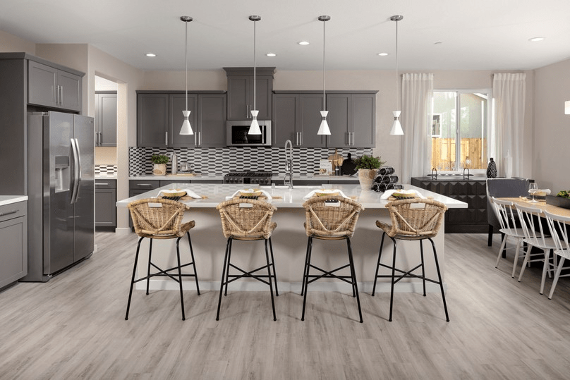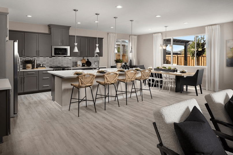 The well-designed gourmet kitchen overlooks a bright casual dining area, and is highlighted by a large center island with breakfast bar, plenty of counter and cabinet space, and ample walk-in pantry.