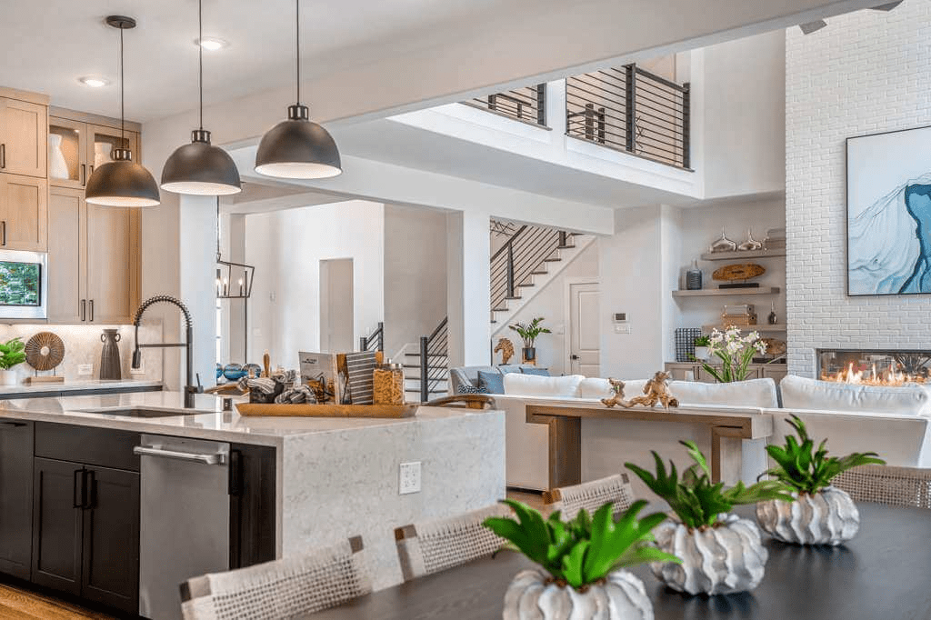 Welcome home! 🏡 The well-designed kitchen overlooks a bright casual dining area, and is highlighted by a large center island with breakfast bar, plenty of counter and cabinet space, and sizable walk-in pantry.