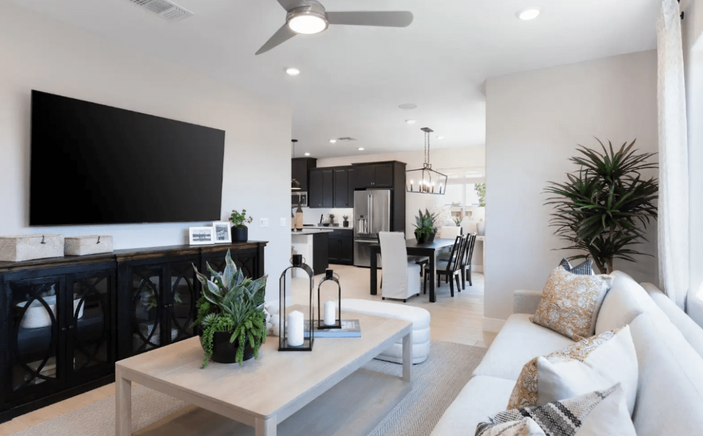 Inside, you’ll find four bedrooms, two and a half bathrooms, and a generous three-car garage. A versatile den provides the flexibility to be used as a private study or converted into an optional fifth bedroom. The thoughtfully designed kitchen and dining area create a seamless flow, making entertaining effortless.