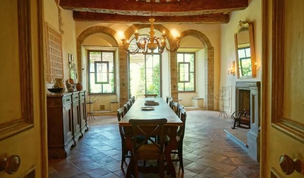 The well-planned kitchen is only a couple of steps from the dining and breakfast rooms. Access to the rear backyard is provided through the family room or the breakfast room. The second floor has at least four bedrooms and three bathrooms plus a loft with sleeping for nine. The third floor houses an additional bedroom or studio with a half bath, as well as a playroom. There is also a basketball court and a swimming pool.