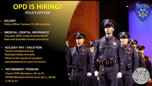 Oakland strives to establish an environment that embraces the richness of culture, community, and individualism of employees. https://www.governmentjobs.com/careers/oaklandca/jobs/4921103/police-officer-trainee-197h?keywords=police&pagetype=jobOpportunitiesJobs