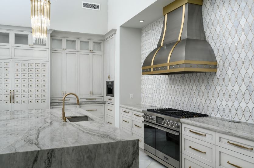 -designer selected tile kitchen backsplash with quartz counters