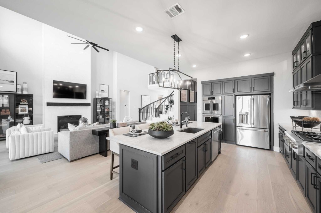 Enjoy comfort and luxury at Residence 1 at Magnolia Station! 🏡Embrace the warmth of the cozy gas fireplace and upscale features in the living room, perfect for unwinding after a long day.